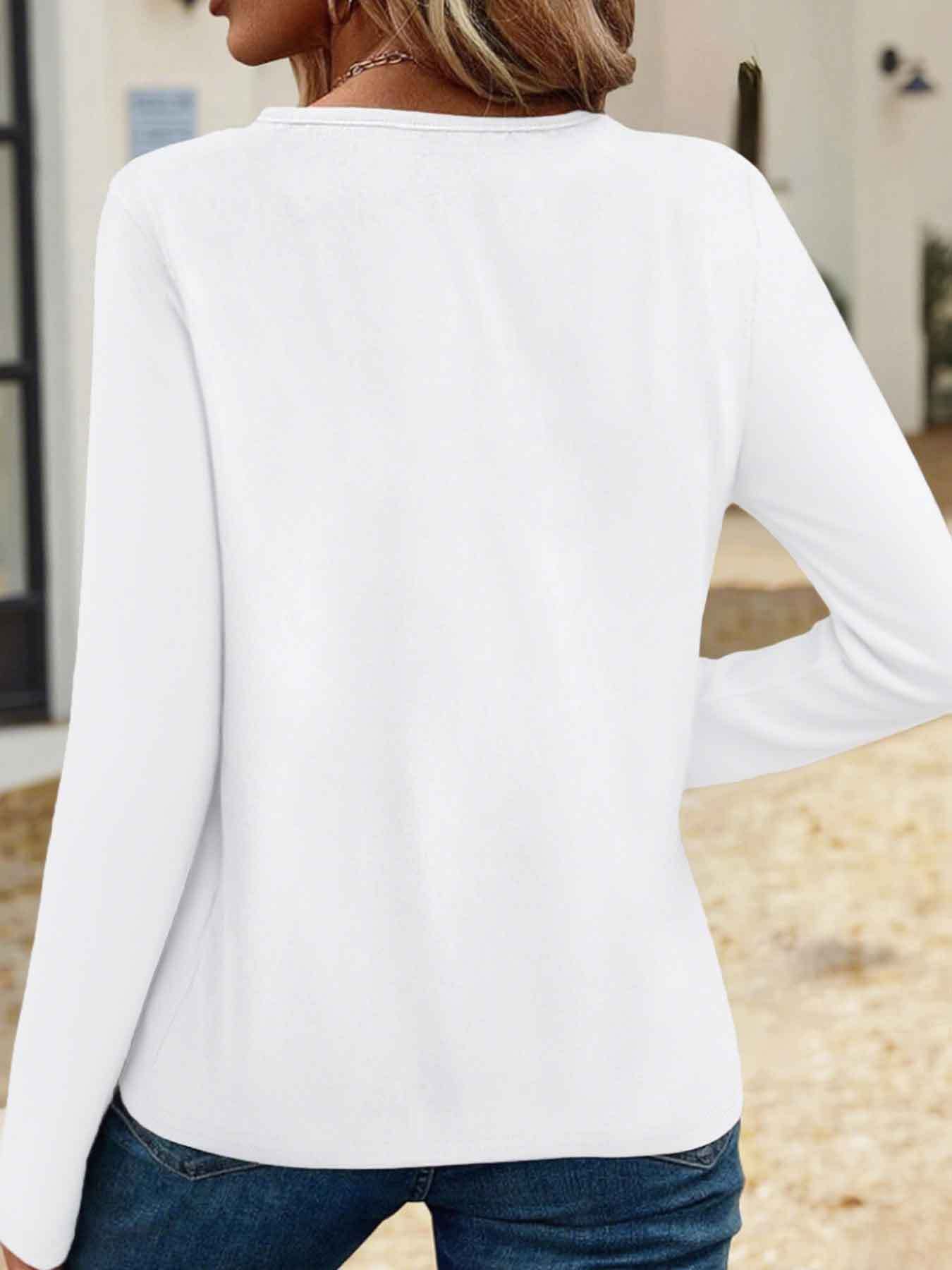 [Breast Cancer Awareness] Women's V-Neck T-Shirt | Pink Ribbon & Butterfly Graphic - "You Are Not Alone" Breast Cancer Awareness Design, Casual Long Sleeve Top for Spring/Summer/Fall