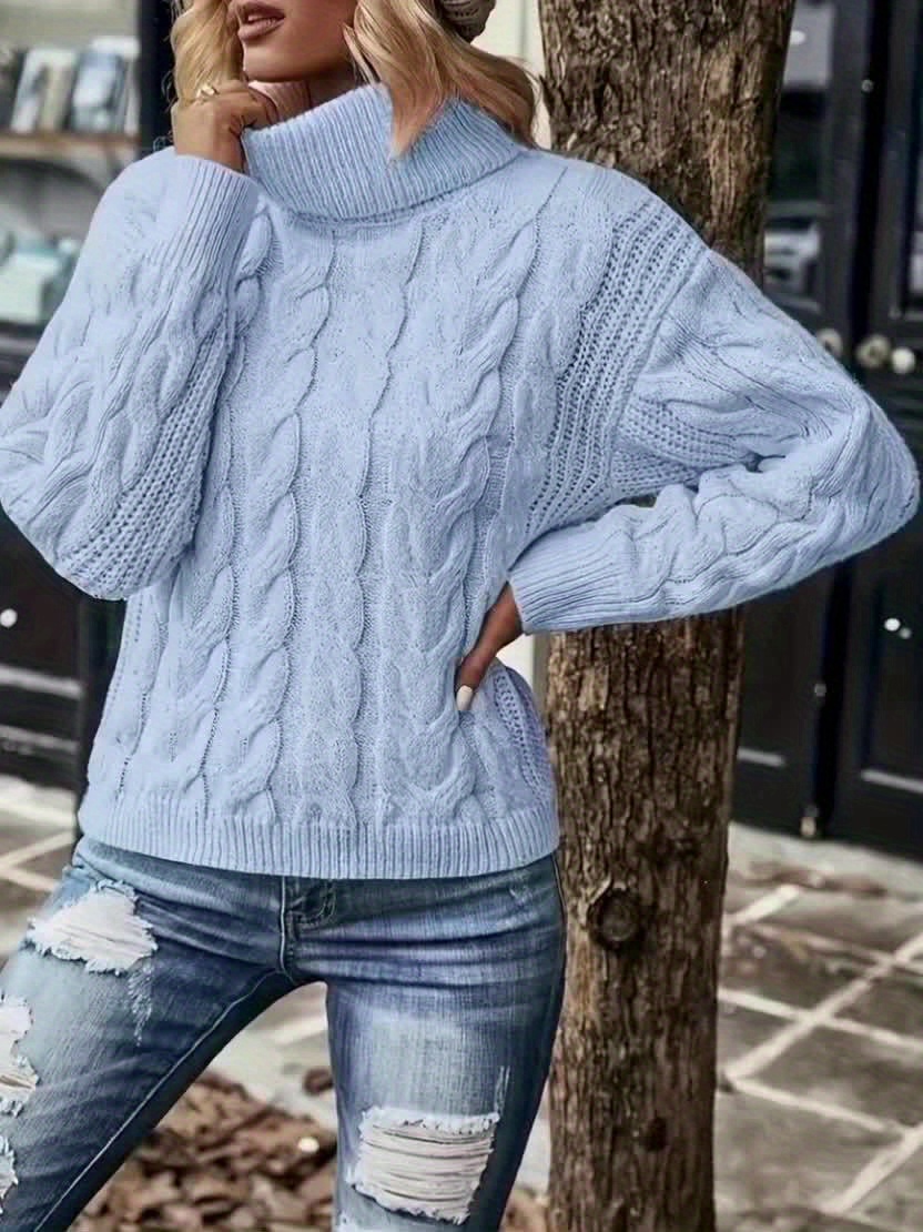 [Plus Size Cable Sweater] Elegant Fashion Plus Size Cable High Neck Women's Sweater | Autumn Winter Office Outfit, Casual Wear, Stylish Pullover, Premium Stitching, Breathable Material, Long Sleeve Top for Curvy Women & Office Ladies