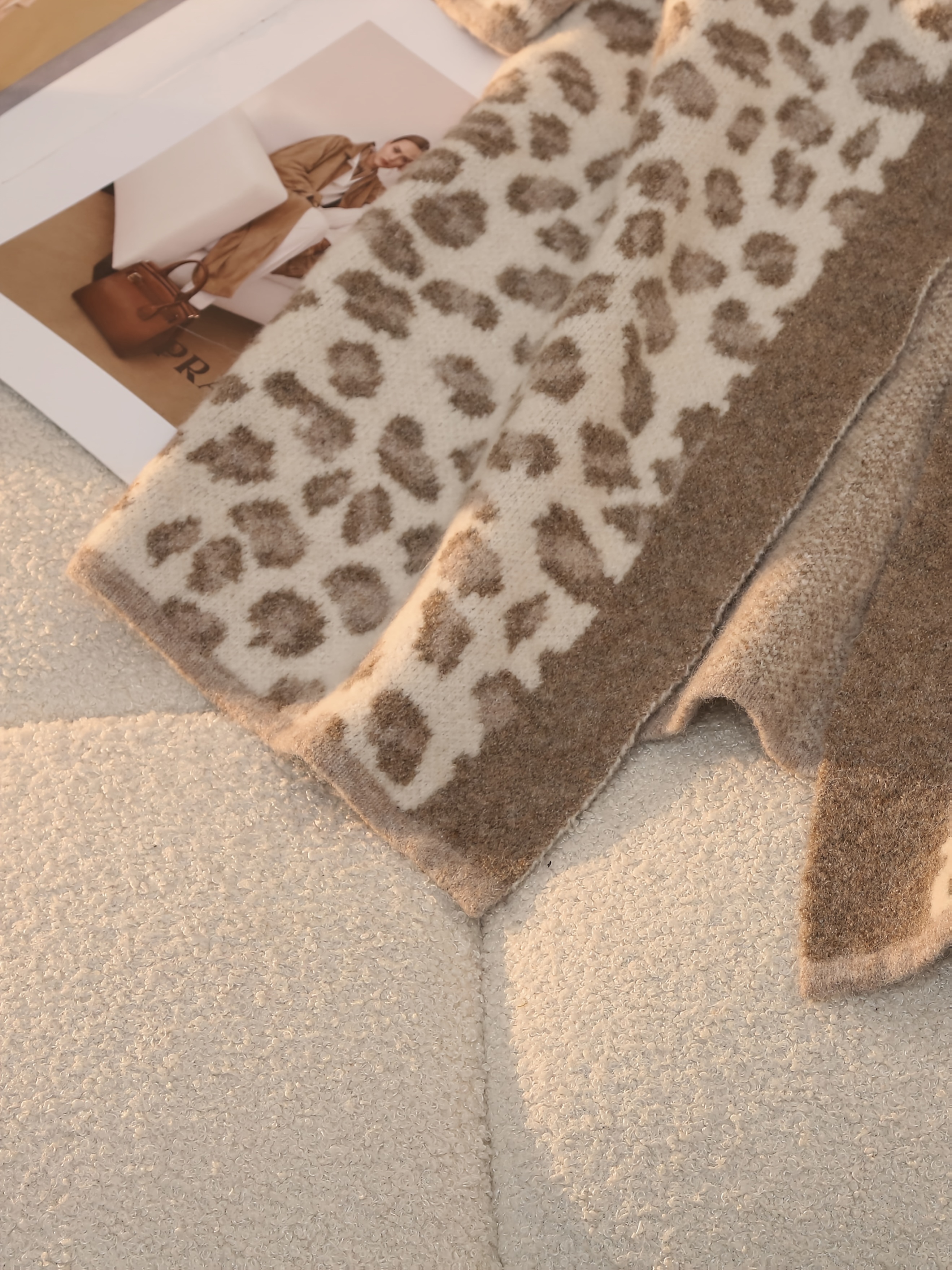 Plus Size - Women'S Leopard Print Cardigan - Cozy Mid-Length Open Front with Pockets, Oversized Fit for Fall/Winter, Warm & Stylish for Casual or Commuting, Cozy Clothing | Leopard Print Cardigan | Construction, Leopard Print Cardigan