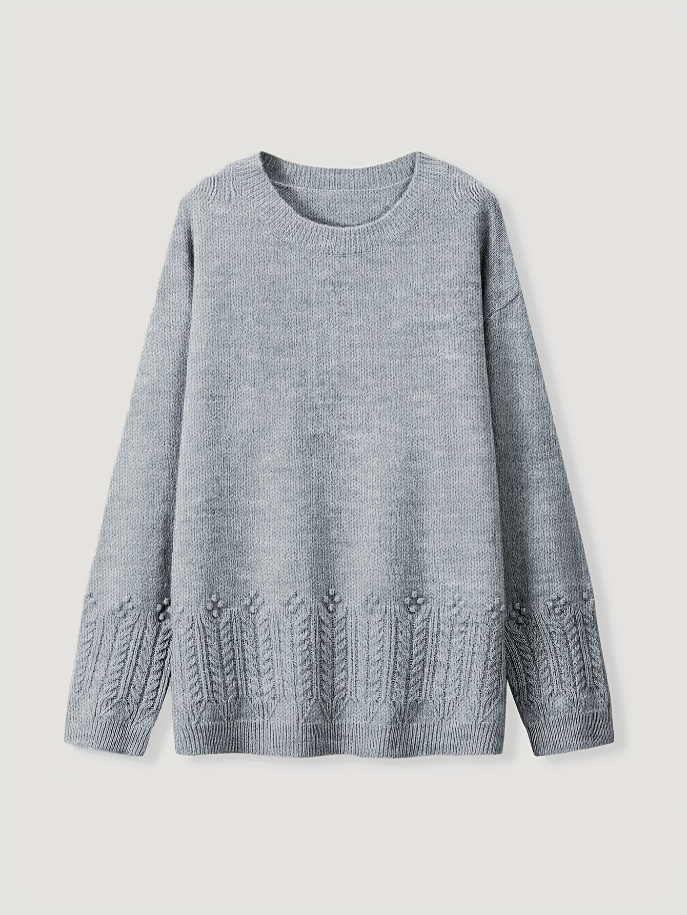 Plus Size, Women's Oversized Elegant Sweater - Winter Warm Round Neck Long Sleeve Cable- Texture Sweater for Fall & Winter, Cozy Casual to Formal Outfits, Plus Size Available (Hand Washable) - Versatile Everyday & Special Occasion Sweater
