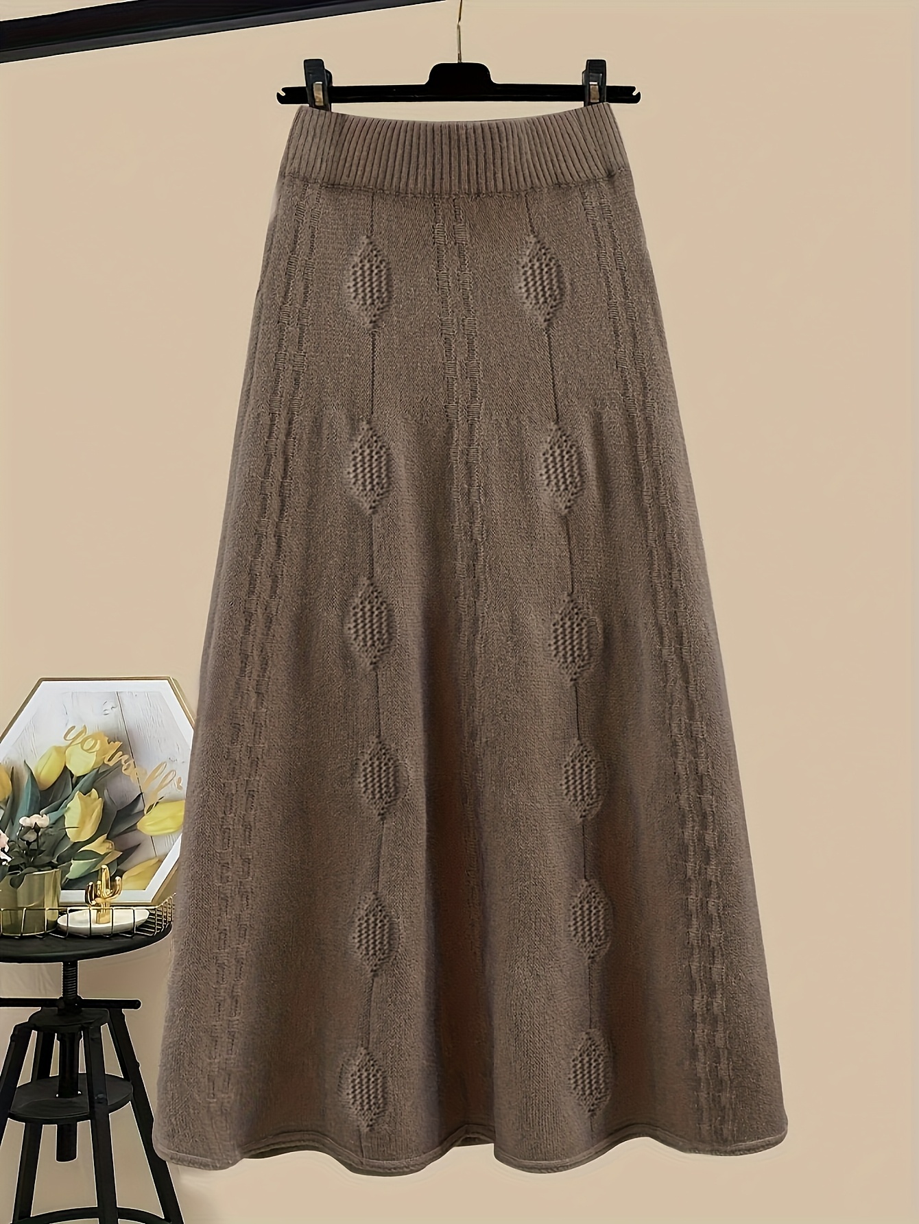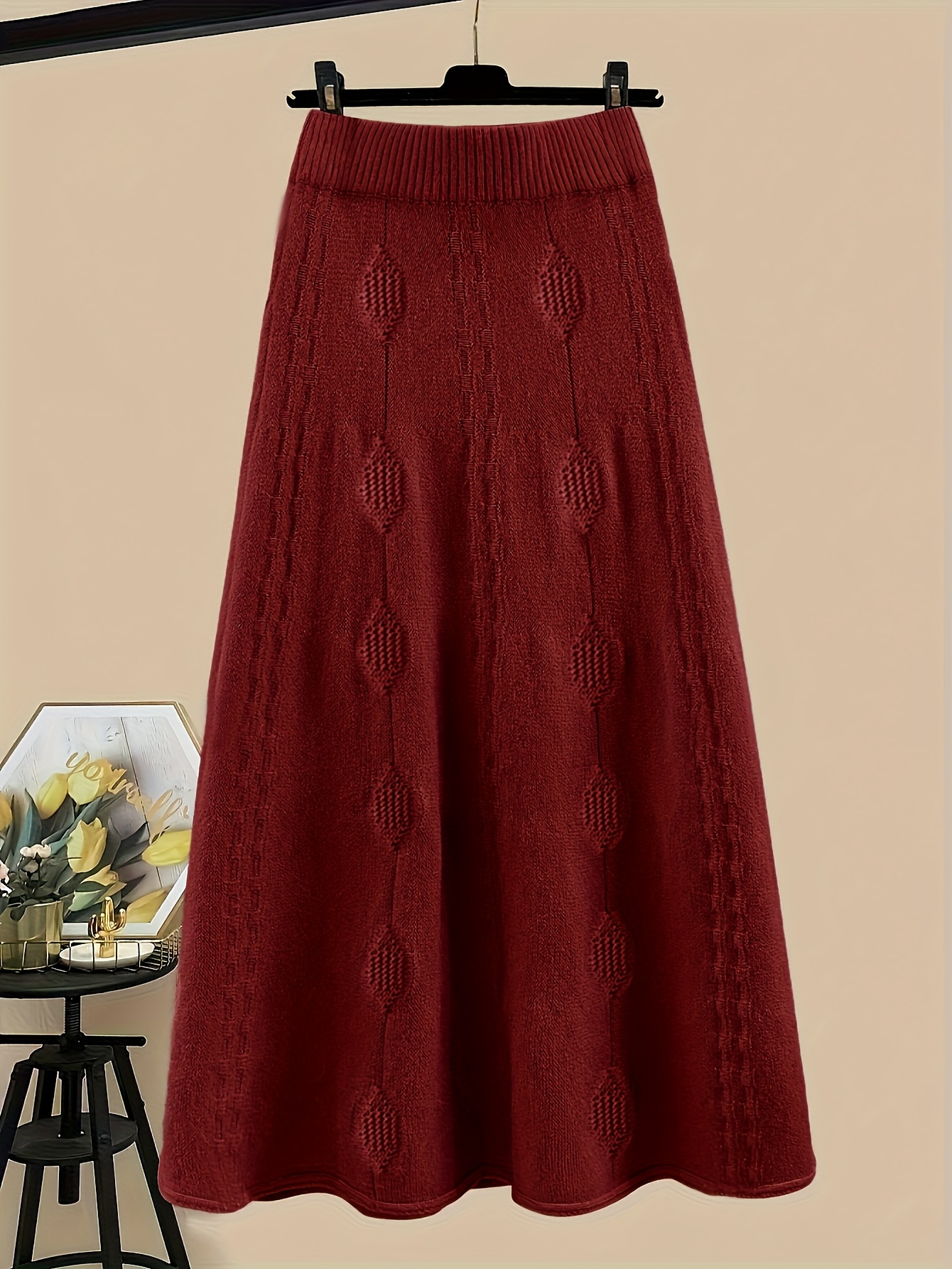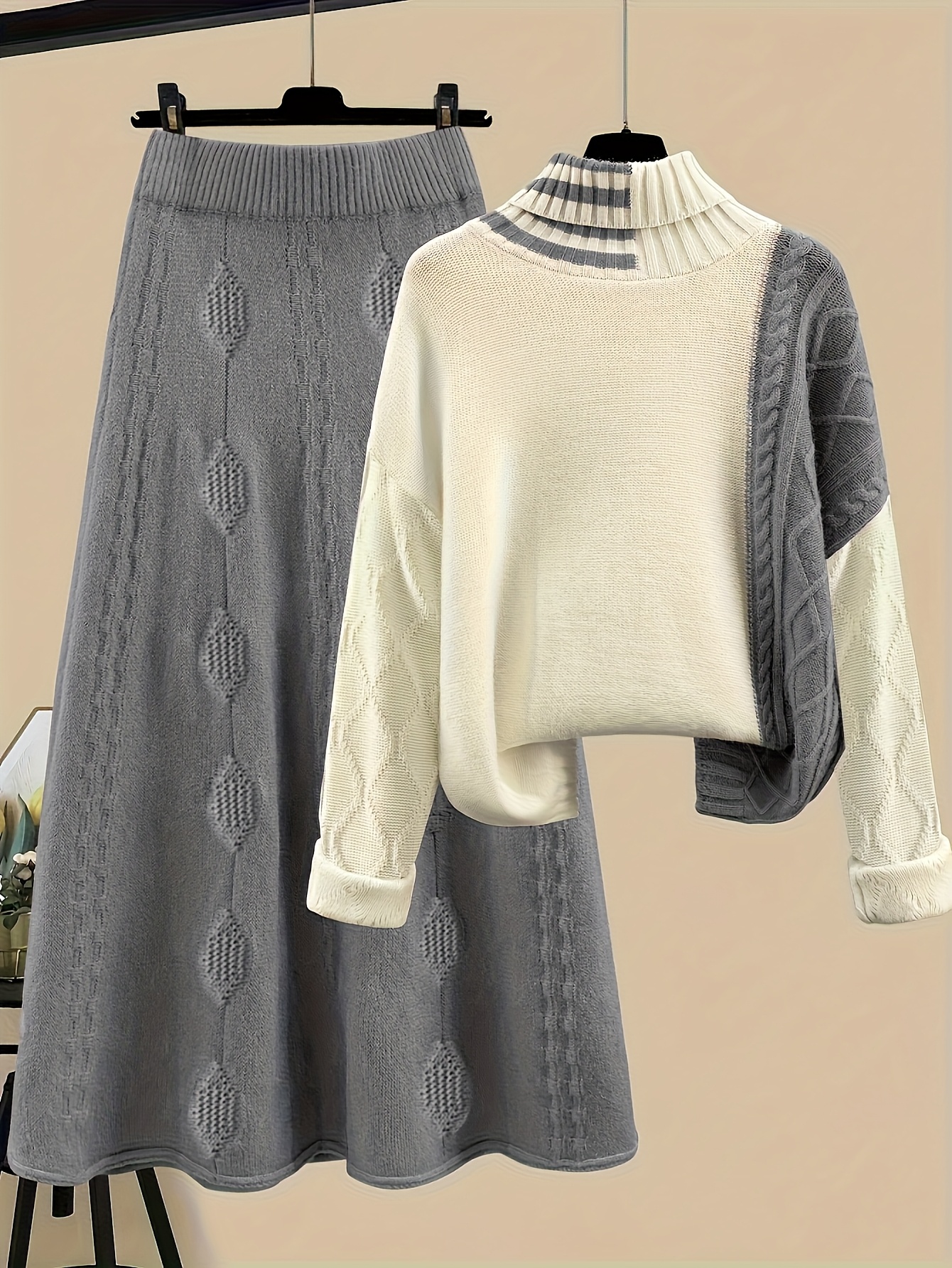 Plus Size, Women's Two-Piece Set, Fashionable and Elegant Long Sleeve Pullover with Skirt in Color Block Design for Autumn/ Winter