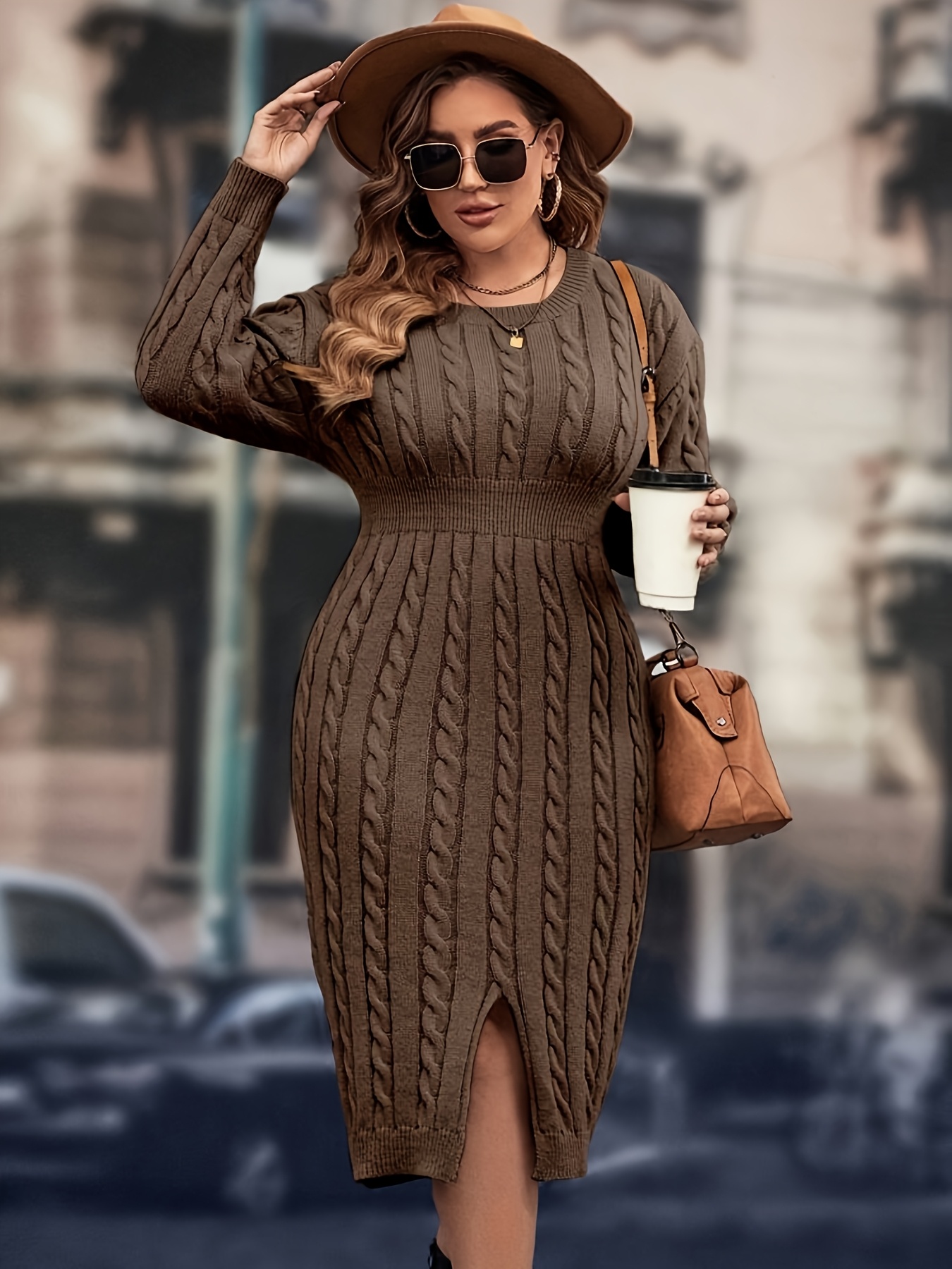 Plus Size - Elegant Plus Size Women'S Bodycon Dress - Fabric, Long Sleeve, Crew Neck, Slim Fit, Solid Color, Perfect for Spring/Summer, Ideal for Halloween, Christmas, Valentine'S Day Gifts, Casual Wear Dress|Slim Fit Dress| Construction, Plus Size Dress