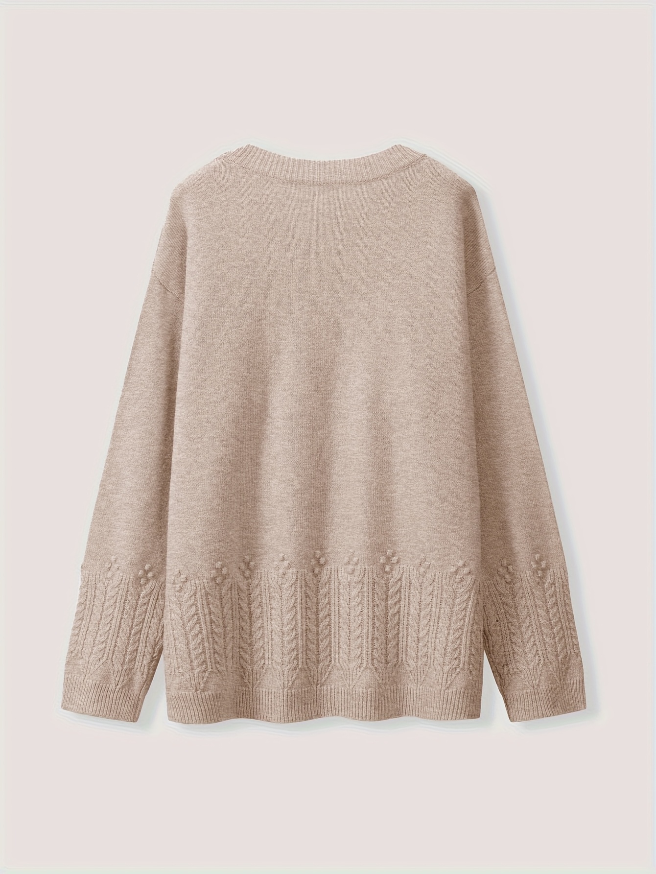 Plus Size, Women's Oversized Elegant Sweater - Winter Warm Round Neck Long Sleeve Cable- Texture Sweater for Fall & Winter, Cozy Casual to Formal Outfits, Plus Size Available (Hand Washable) - Versatile Everyday & Special Occasion Sweater