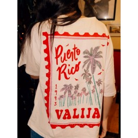 Women'S Casual Elegant Puerto Rico Graphic Print T-Shirt - Vibrant Red & Pink Design, Crew Neck, Short Sleeve, Lightweight Polyester, Perfect for Summer Outfits