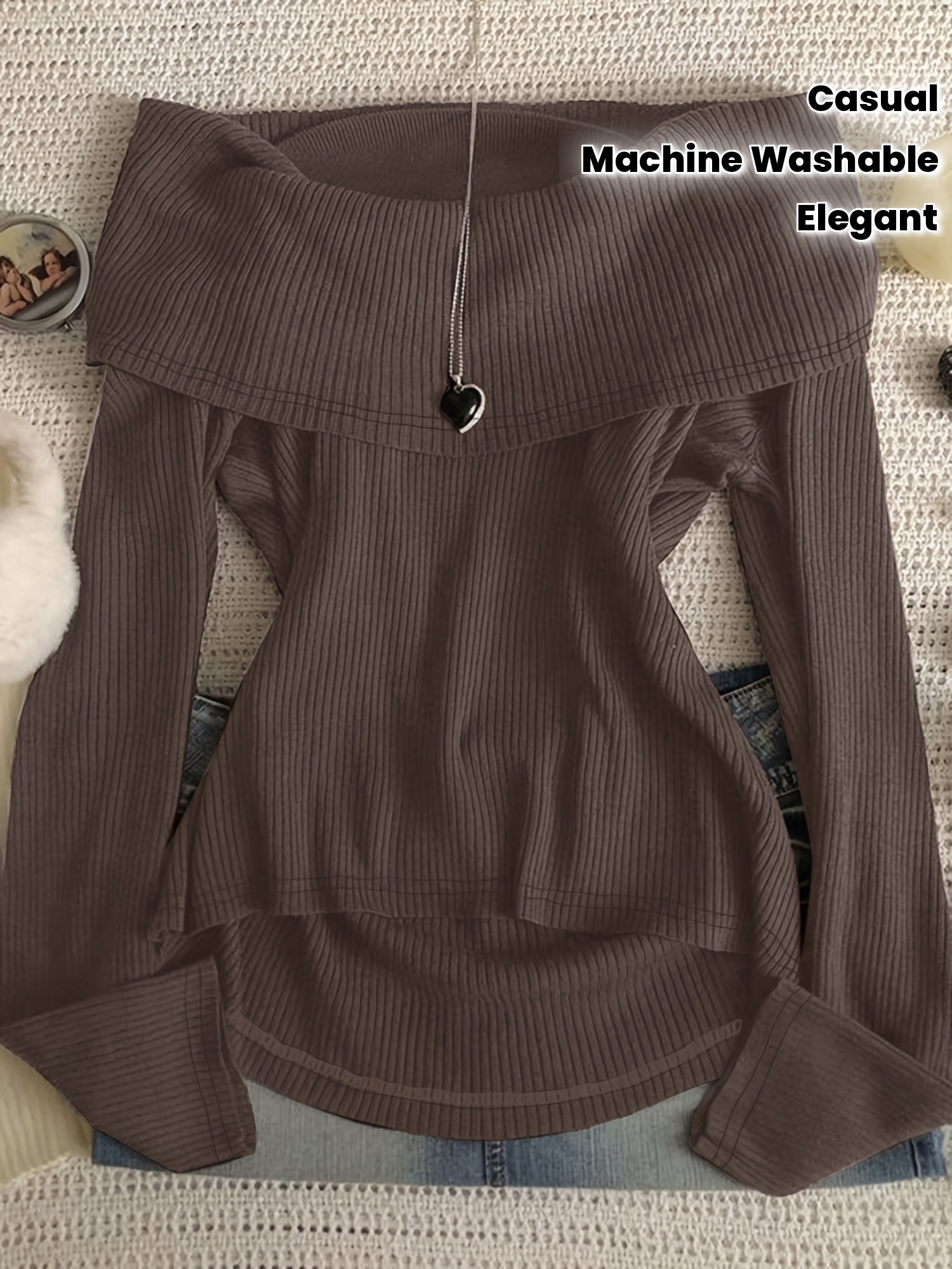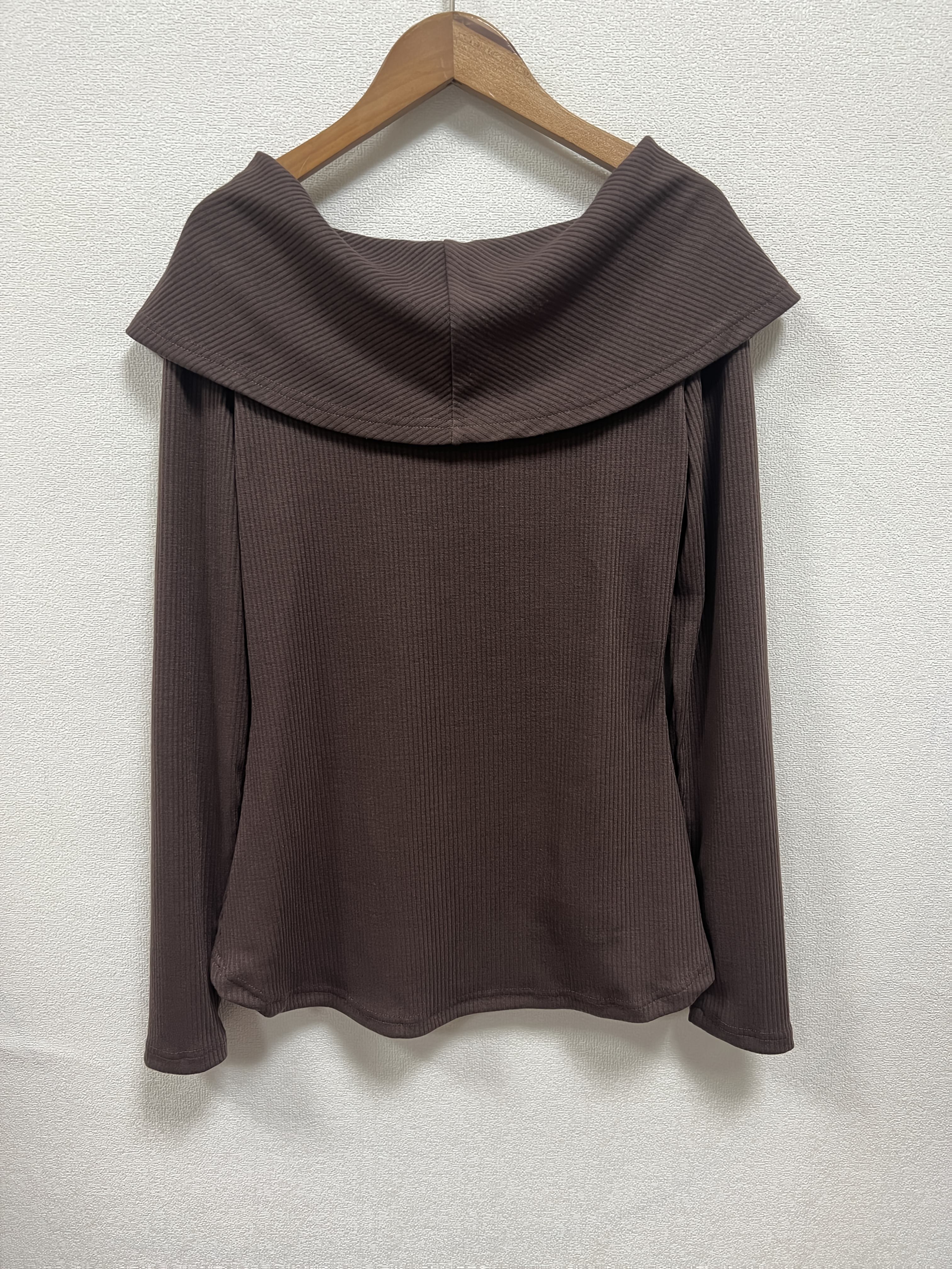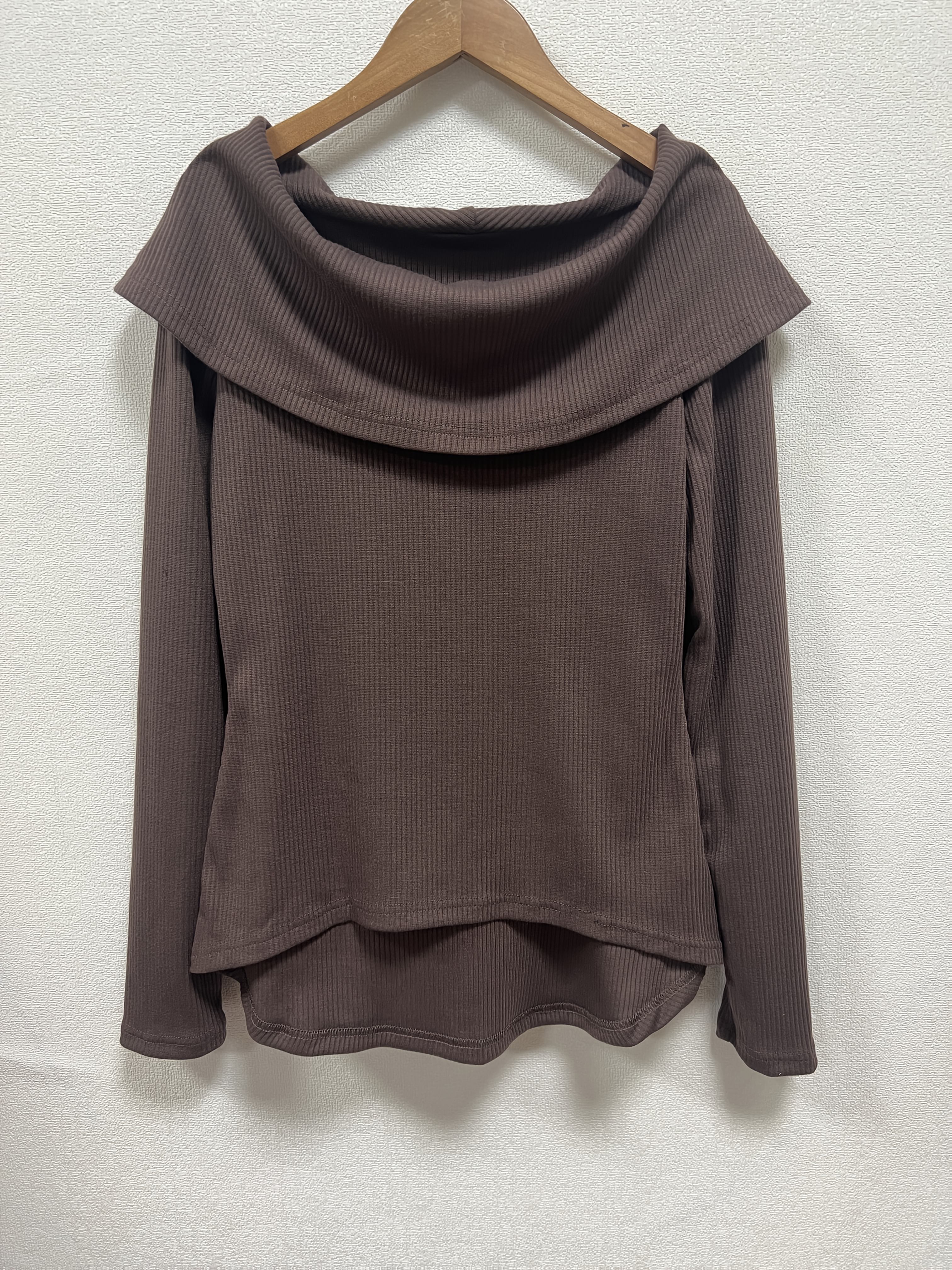 Women's Elegant Asymmetrical hem long Sleeve T-Shirt - Chic Brown Tops for Casual & Formal Outfits - Machine Washable Everyday Women's Fashion Blouse, Office Attire, Modern Style, Medium Stretch, Stylish Shirt, Office Women